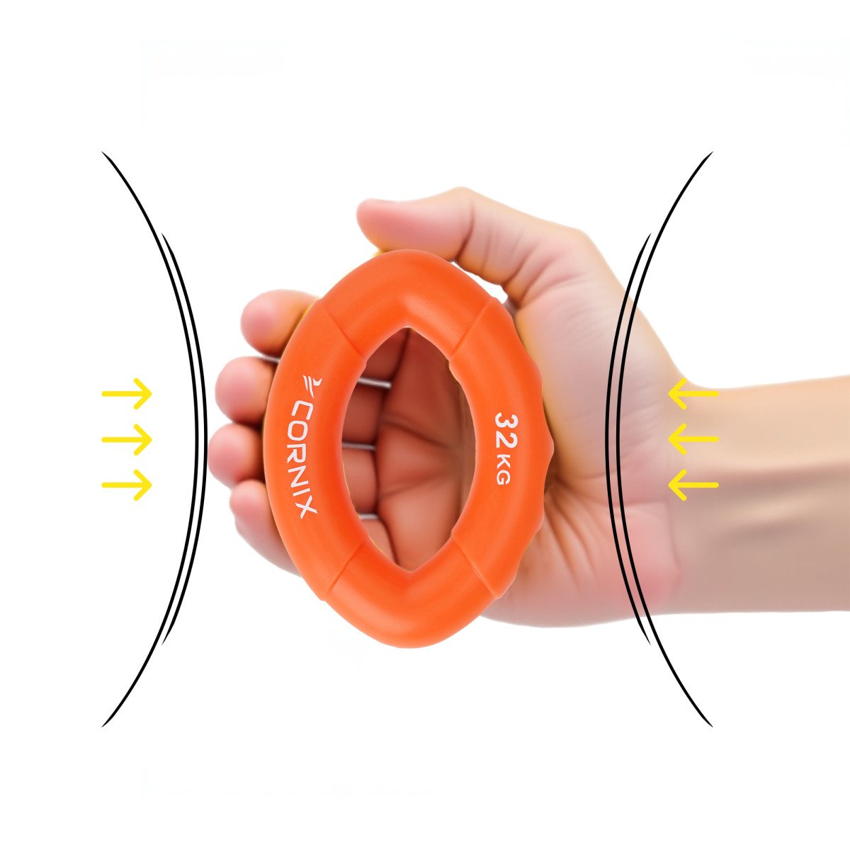 Еспандер Cornix виготовлений із високоякісного силікону, який не має запаху, приємний на дотик і не викликає подразнень шкіри. Його форма овала з чотирма канавками для пальців забезпечує ідеальне прилягання до долоні та комфортний хват незалежно від розміру руки. Розміри виробу складають 10 x 8 x 2.2 см, що робить його компактним і зручним для транспортування, а вага всього 87 г дозволяє носити еспандер у сумці чи кишені й використовувати в будь-який момент. Матеріал стійкий до деформацій, тому навіть при регулярних тренуваннях аксесуар довго зберігає початкову форму. У модельному ряді доступні варіанти з навантаженням 18 кг, 23 кг, 27 кг та 32 кг, що дозволяє підібрати оптимальний рівень відповідно до індивідуальних потреб: від легких вправ для відновлення після травм до більш інтенсивних тренувань для розвитку витривалості й сили хвата. Еспандер не вимагає додаткових налаштувань чи умов - його можна використовувати будь-де, навіть під час перегляду телевізора або роботи за столом.