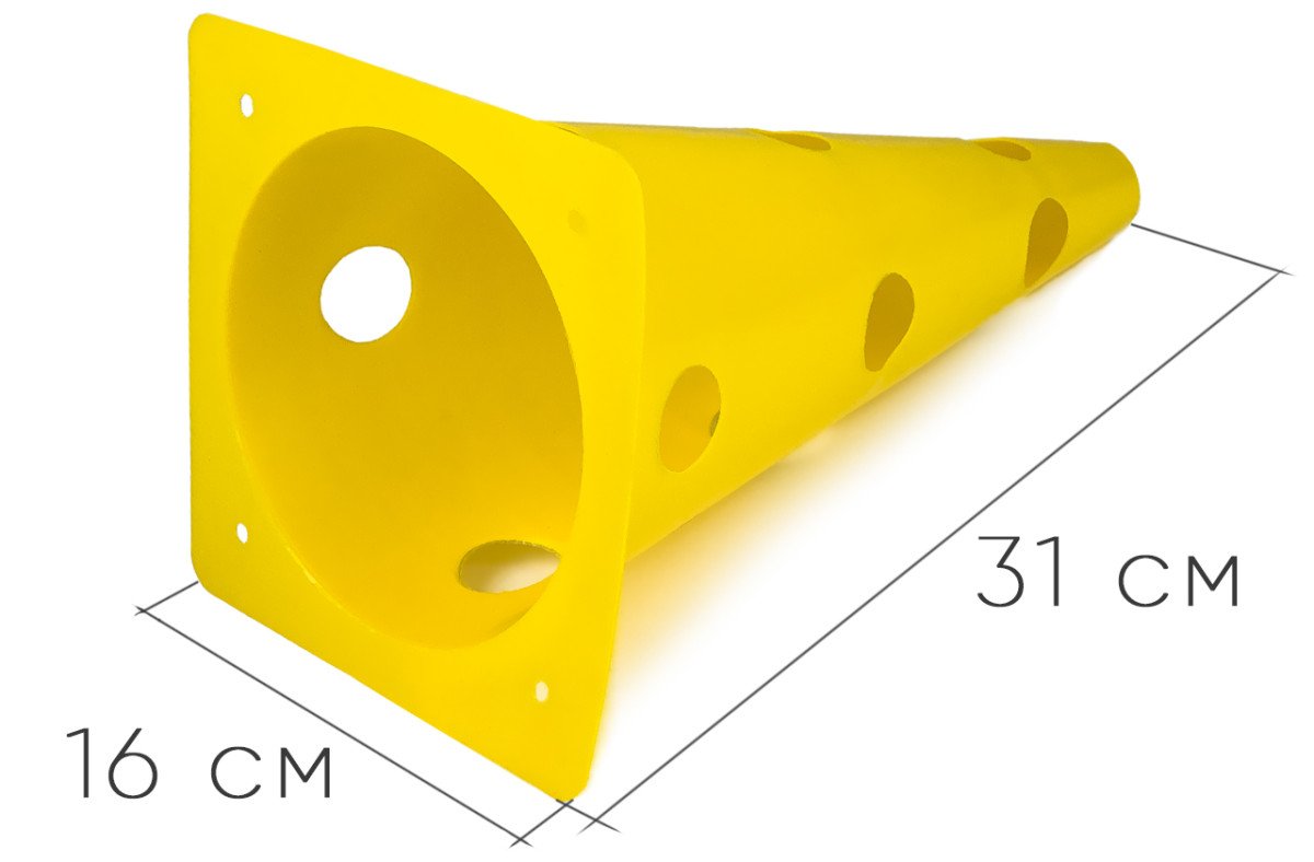 Можливість застосування в освітніх цілях: Пластикові конуси висотою 31 см можуть використовуватися для навчання та інструктажу в спортивних групах, школах та інших навчальних закладах, допомагаючи демонструвати правильні техніки виконання вправ і спортивних рухів.