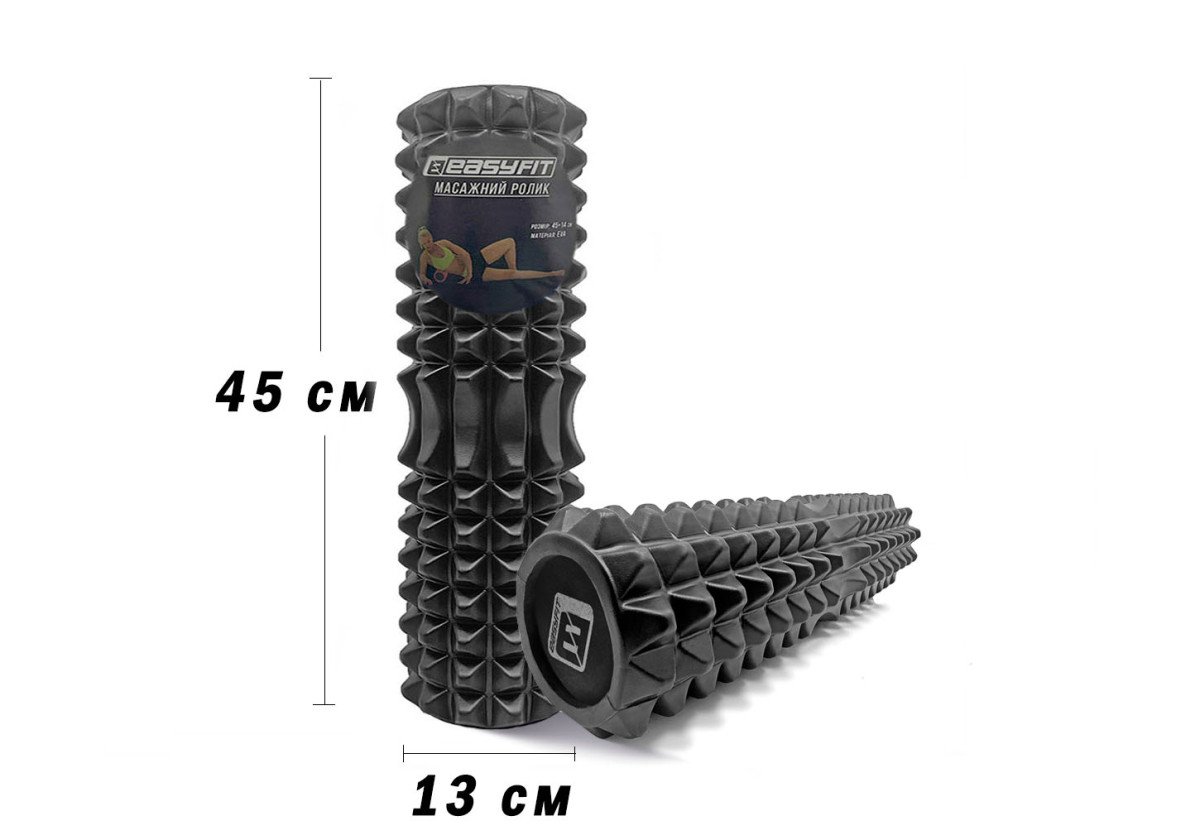 Довжина 45 см - оптимальний розмір, що дозволяє ефективно опрацьовувати як великі м'язові групи (спина, стегна, сідниці), так і менші м'язи (литки, руки).