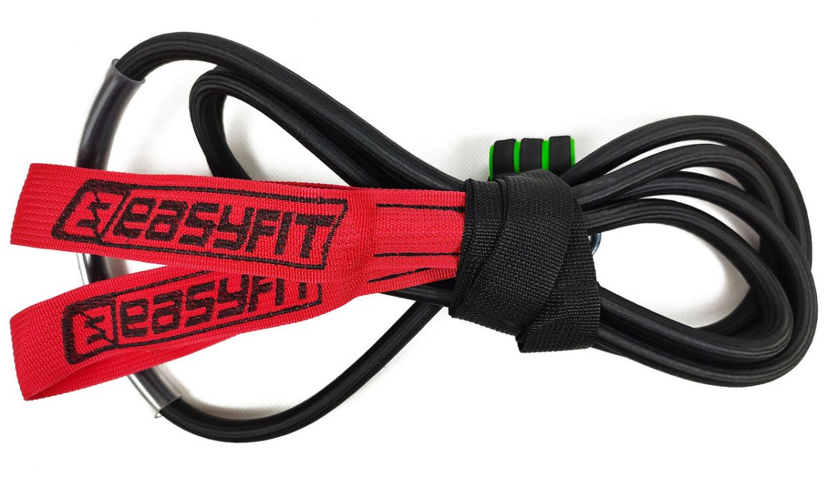 Довговічність.Склад гумки EasyFit - латекс у вигляді джгутів дрібного перетину. Прожилки на відміну від цільної гумовою петлі краще переносять будь-які навантаження і набагато менше рвуться. При пошкодженні навіть одного джгута еспандер залишається цілісним і не втрачає своїх властивостей. Додатковим захистом є обплетення з міцної поліефірної нитки, яка захищає еспандер від зовнішнього впливу.