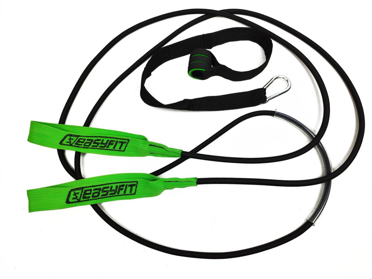 Великий комплекс вправ. На відміну від закільцьованої гумки за допомогою такого тренажера можна виконувати набагато більше різних вправ. Еспандер EasyFit дає можливість одночасно і незалежно виконувати руху кожною рукою (або ногою). За допомогою однієї гумки такого конструктиву можна, наприклад, виконувати розведення, імітувати роботу з гантелями (на горизонтальній лаві або виставленої під кутом), всілякі жими і верхні тяги, вправи з гирею, почергове підняття рук на біцепс і інші .... Фактично комплекс вправ обмежується тільки фантазією користувача.
